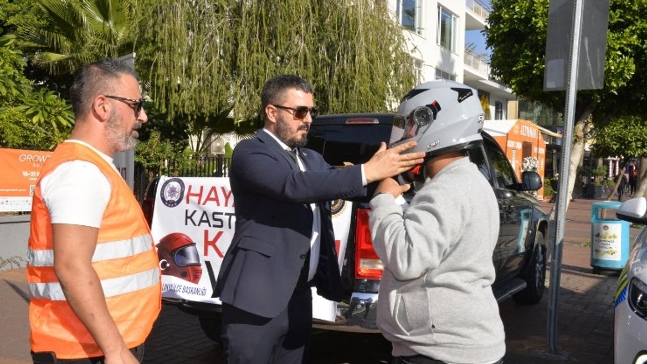 Alanya’da motosiklet kazalarını azaltmak ve kask kullanımını artırmak amacıyla EMŞAV Alanya İlçe Başkanlığı ile Alanya İlçe Emniyet Müdürlüğü ortak bir farkındalık çalışması gerçekleştirdi. Mola Kavşağı’nda yapılan uygulamada, kask takmayan sürücülere polis tarafından cezai işlem uygulanırken EMŞAV ekipleri ise sürücülere ücretsiz kask dağıttı. Bu anlamlı etkinliği megatv yerinde takip etti.