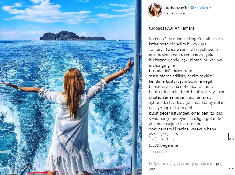 Manken Tuğba Özay'dan Van paylaşımı